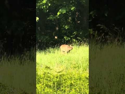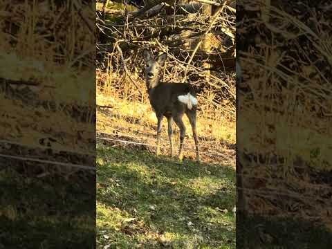 Come direbbe Vasco…EH GIÀ!! Abbiamo la meravigliosa fortuna anche di avere incontri nel nostro giardino. I cervi e cerbiatti. I cervi sono grandissimi e io amo il maschio per la sua eleganza con le corna, i cerbiatti sono tenerissimi e si fidano di più dell’umanità. Non scappano facilmente, nemmeno di fronte all‘abbaiare di Mia e Chanel… i cervi invece si fidano di meno. Sono pericolosi di notte, spesso quando torniamo a casa li trovi im mezzo la strada o ti passano davanti proprio mentre stai guidando. Bisogna avere un po‘ di attenzione soprattutto quando è il loro periodo. Siamo stati fortunati anche di vedere una mamma cerva con il suo cucciolo che allattava, ma era distante, giustamente era nella sua privacy. Un giorno Melissa era in giardino a fare colazione e la sentii urlare. Da mamma ti prende un colpo e nello mio spavento sono corsa di fuori per vedere cosa era accaduto. C‘era un cerbiatto nel giardino 🥰 era cosi emozionata Melissa che non riusciva a dire niente e il cerbiatto con tutte urla non si è spostato di una virgola da dove stava 🤣🤩😜.