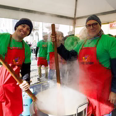 🎭28/01 al 01/02🎭... Il Carnevale di Chiasso è uno degli eventi più attesi del Mendrisiotto e rappresenta una combinazione unica di allegria, musica e satira. Ogni anno la città si trasforma in un grande palcoscenico a cielo aperto, dove sfilate colorate, maschere originali e gruppi musicali animano le strade per diversi giorni. Uno degli elementi più caratteristici del Carnevale di Chiasso è il suo spirito ironico: carri allegorici e costumi spesso prendono spunto dall'attualità politica e sociale, offrendo una lettura divertente e pungente dei temi del momento. Le Guggenmusik, con i loro ritmi travolgenti, contribuiscono a creare un'atmosfera festosa che coinvolge grandi e piccoli. Accanto alle sfilate non mancano momenti conviviali: risotti, luganighe e altre specialità locali vengono distribuiti al pubblico, rafforzando il senso di comunità e condivisione. Il Carnevale di Chiasso non è solo una festa, ma un'occasione per ritrovarsi e celebrare insieme la tradizione con uno sguardo leggero e spensierato sul presente.