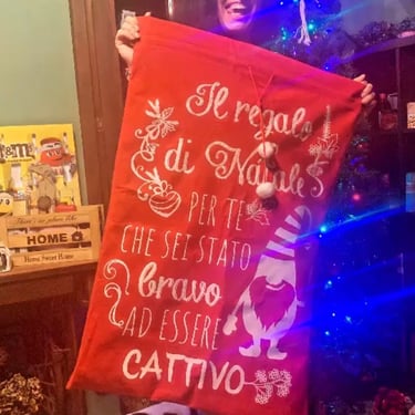 Sono riuscita nel pomeriggio, a fare tutti i pacchi regali 🎁. Come vi avevo accennato, quest'anno ne ho approfittato, facendo la maggior parte dei regali tramite internet. Lo so che sarebbe meglio evitare perché cosi morirebbe il mondo del commercio dei negozianti, ma con i tempi che abbiamo a disposizione e sempre di fretta, ho approfittato dei siti e ad oggi, 11 Dicembre, mi trovo già con i pensierini fatti e impacchettati 🥰. In realtà mi mancavano i Labubu per Melissa ( si, quest'anno ho fatto una mattata prendendogliene due), erano in consegna oggi, ma purtroppo, non sapendo bene l'orario preciso di quando possa arrivare il corriere e vedendo l'orario che per me era tardi 😂, pensavo che mi arrivassero domani...ma il corriere ha citofonato alle 15,40 !! La prima volta che mi consegnano a quest'ora... però, grazie a questo, ho concluso il mio lavoro. Quando sono arrivata qui in Svizzera, con Patrick ci siamo divertiti a trovare il nostro albero di Natale adatto per la nostra casa. Nello scegliere l'albero, l'occhio mi cadde su una sacca grandissima rossa porta regali. Mi innamorai subito e già sapevo come usarla... UN PORTA REGALI DI NATALE PER TUTTI da mettere sotto l'albero. L''adoro troppo, sembra che sia passato Babbo Natale qui da me quando la sacca è piena. Di solito apriamo i regali tutti insieme aspettando la mezzanotte del 24 dicembre, la vigilia di Natale, aprirlo e iniziare a dare i regali, fa il suo figurone. Quest'anno ho visto che ci sono altri modelli, con disegni e tessuti diversi ma io sono affezionata a questa sacca e finchè durerà, farà compagnia al nostro albero di Natale🎄.