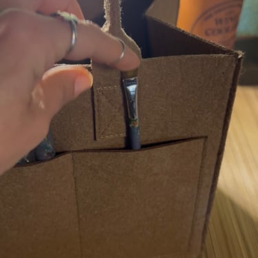 Sabato, quando siamo tornati all‘outlet della Migros, sono rimasta innamorata di questa borsa marrone in lana cotta. Ho aperto la mia fantasia e costando veramente ad un prezzo molto basso, ( da 34 franchi a 8,5 franchi ), pur non essendo il mio modello di borsa che indosso, ho deciso di dargli vita un pò particolare. Ho messo all‘interno i colori acrilici che ho, pennelli e tutti gli accessori che utilizzo quando pitturo. Dentro ha un divisorio che puoi modificarlo come tu vuoi in base a come organizzi la borsa. Sono stata contenta perché riesce stare in ordine anche in cantina dove ho il mio angolo delle mie cose🥰