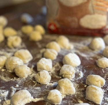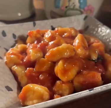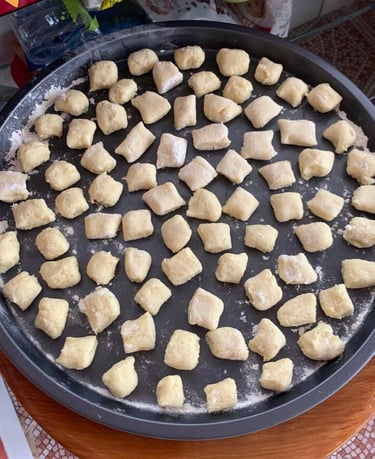Ho lavorato questi gnocchi mentre tornavo dal lavoro e in primo passaggio l'ho fatto prima di andarci. Ma comunque l'importante è lasciarvi la ricetta perché è semplicissima e facilissima. Come prima cosa ammorbidite nel latte o nell'acqua il pane. Ad esempio io con 300 gr di pane ho aggiunto 200 ml di acqua, una volta ammorbidito, ho lavorato il pane formando un bel paninetto liscio come se fosse un lievito di pizza. Dopo ho aggiunto solo un uovo intero perché due mi sembravano troppe, la farina 100 gr e basta. Se volete potete aggiungere il parmiggiano. Una volta lavorato bene iniziamo a stendere l'impasto con un pò di farina da lavoro. Ovviamente se vedete che l'impasto è appiccicoso potete tranquillamente aggiungere altra farina ma fate attenzione di non aggiungerla troppa altrimenti c'è rischio che gli gnocchi diventano durissimi in cottura. L'impasto lo stendiamo in modo da creare quattro palline che da quelle palline formeremo un lungo serpentino. Formato il serpentino con il coltello tagliamo i gnocchi in base alla grandezza che vogliamo o che ci piace dello gnocc, formando dei rettangoli. Quando l'acqua bolle buttiamo i nostri gnocchi nella pentola ma ricordate che a cottura, non vengono su a galla come i gnocchi di patata, il tempo che consigliano di cottura giusta sono su per giù quei 8-10 minuti. Potete condirli come volete, in bianco o al sugo... All'inizio ero scettica perché avevo paura che fossero pesanti... Il pane ha già la sua cottura con il lievito, farina, sale, olio e acqua. Facendo questo piatto noi aggiungiamo altra farina, uovo, parmigiano, latte... calcolando poi gli ingredienti che useremo per concludere il condimento del nostro piatto, ma alla fine mi sono ricreduta, sono leggeri e gustosi. La differenza si sente perché giustamente la patata ha il suo sapore ma se ne sente poca perché per come sono buoni vai a dimenticare lo gnocco originale. Ho preparato il sugo alla puttanesca perché avevo delle olive taggiasche avanzate. Olio, aglio, olive taggiasche, pasta di acciughe, capperi e pomodoro.