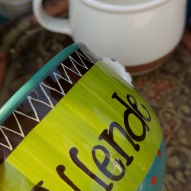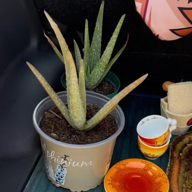 Devo ritenermi fortunata visto che ultimamente quando vado all‘ecocentro trovo cose interessanti, a mio gusto, tornando a casa contentissima. Mi sono innamorata subito di questo vassoio in legno, decorato meravigliosamente in oro, bronzo che da quel tocco vintage spettacolare 😍, le tazzine sono della Thum, nuovissime. Le fondine… come facendo a non prenderle. Nuove di zecca, io ne ho prese solo 4 ma ce n’erano a volontà. La tazza verde con i suoi bei colori è entrata in casa nostra con molta facilità, proveniente dal Messico, originale. Quattro piante lasciate li, aspettavano solo un nuovo padrone. Qui devo dire la verità, non ero convinta di prenderle, semplicemente perché andiamo incontro all‘inverno e un po mi aveva bloccato, invece Patrick mi ha detto che era un vero peccato perché comunque sono piante che costano e poi curate bene vengono anche alte e grandi. Così le abbiamo prese e a casa le abbiamo travasate tutte insieme, nello stesso vaso molto capiente💞. Vediamo la prossima volta quale occasione mi capiterà 🤪