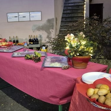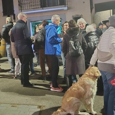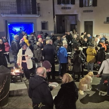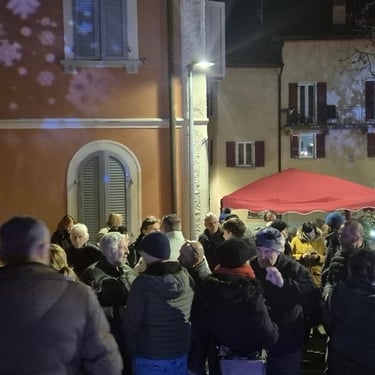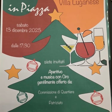 Si respira aria di Natale in ogni angolo di casa, in ogni vicolo, strada e piazza... oggi ci troviamo a Villa Luganese... nella nostra Piazza. La Commissione di Quartiere e il Patriziano hanno organizzato l'allestimento del presepe esterno, come ogni anno, simbolo del nostro paese, il presepe con le statuine in legno insieme alle consuete accensioni delle luci natalizie. Viene sempre accompagnato da un ricco aperitivo offerto a tutta la popolazione. Quest'anno, oltre all'aperitivo abbiamo avuto il piacere di ballare e cantare con la musica live con Ciro. A breve vi parlerò di lui e ve lo farò conoscere. Mi piacciono troppo le feste di paese, diventa un clima molto familiare, ti ritrovi con tutti quanti insieme a brindare, a cantare e a ballare felicemente e per fortuna che il meteo è venuto dalla nostra parte. È stata una giornata calda pur essendo invernale, soleggiata e nemmeno una nuvola. Dopo l'aperitivo è stata offerta la Raclette, la coda per mangiarla era lunga, ma con un pò di pazienza tutti sono tornati a casa con la pancia piena, felici e contenti.