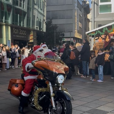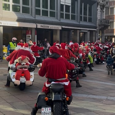 Dopo l'accensione dell'albero di Natale, che ha aperto le danze alle feste natalizie, oggi vi parlerò delle Harley Davidson che hanno riempito la piazza di Lugano, vestiti da Babbo Natale🎅🏽. A Lugano, la storia di Harley-Davidson a Natale è la tradizione della sfilata dei Babbo Natale in moto (spesso su Harley), un evento benefico annuale a sostegno di Telethon, che porta gioia e solidarietà per le vie cittadine, coinvolgendo decine di. motociclisti in costume per raccogliere fondi per bambini malati. È un'usanza che unisce il rombo dei motori alla magia del Natale, consolidando l'immagine del marchio anche nel contesto locale. È un appuntamento fisso nel periodo natalizio luganese, che si ripete di anno in anno, diventando un momento atteso della comunità. Possiamo ammirare oltre 60 San Nicolao in Harley Davidson per le vie della città 😍 Per me, quest'anno è stato il mio primo incontro con loro e devo dire che mi ha regalato un'emozione unica. Li abbiamo attesi con ansia e tutti insieme si è creata un'atmosfera magica, natalizia...come tornar di nuovo bambini🥰.