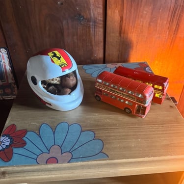 Come già vi ho raccontato, questo carinissimo comodino l' ho recuperato all'ecocentro...era li solo solo e non potevo non prenderlo. In ottime condizioni, legno buonissimo, colore delicato che si avvicina molto al tavolino che abbiamo in salone fatto con le palette, portandolo a casa lo abbiamo messo accanto al tavolino. Volevo dagli un tocco in più ma ero indecisa se fare con i pennelli o prendere degli adesivi. Questa volta ho optato per gli adesivi e mi sono messa subito alla ricerca di quali potevo prendere. Devo dire la verità li ho trovati molto facilmente per semplice fatto che volevo che mi arrivassero velocemente, ho usato Amazon, infatti nel giro di tre giorni già erano arrivati. Volevo usare la tecnica dello scrapbooking, crei te il disegno con l'adesivo, e devo dire la verità che il risultato non è stato male. Sono rimasta contentissima e soddisfatta. Sopra ho messo delle macchinine ( autobus) di quando era piccolo Patrick, in ferro, in più un posa cenere della Ferrari originale, un po trascurato ma pur sempre vintage 😜.