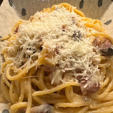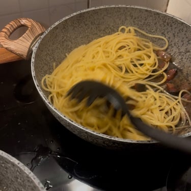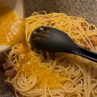 La carbonara, per me, è una cosa seria ma senza troppe regole rigide. Le dosi le regolo sempre in base a quante persone siamo, un uovo a testa. Il resto vien da se. Per due persone calcoliamo 200 gr di pasta (spaghetti o rigatoni), 1 uovo intero, 1 tuorlo, il guanciale quanto basta, pecorino romano fresco grattugiato, pepe nero, sale. Per due persone uso 1 uovo intero + 1 tuorlo. Per quattro persone 1 uovo intero e 3 tuorli e cosi via. L'uovo intero resta sempre uno. Per prima cosa metto il guanciale in padella a freddo e lo lascio rosolare lentamente. In teoria non servirebbe l'olio, rende tutto più grasso e più godurioso. Come si dice, si mangia una volta sola, quindi tanto vale farsi male. Nel frattempo preparo la crema. In una ciotola sbatto le uova con una bella manciata di pecorino romano grattugiato, un pizzico di pepe e un pizzico di sale. Il composto deve essere bello cremoso. Metto l'acqua aper la pasta a bollire e la salo. Quando la pasta è quasi al dente, la scolo (tenendo la parte dell'acqua di cottura) e la trasferisco direttamente nella padella con il guanciale. La faccio finire di cuocere li, aggiungendo poca acqua di cottura alla volta per creare una base cremosa. A fuoco spento verso il composto di uova e giro energicamente. Se vedo che si sta asciugando troppo, aggiungo ancora un po di acqua di cottura fino ad ottenere la consistenza giusta. Cercate di basarvi voi ad occhio il quanto si asciuga, al limite la togliete dal fuoco per non rischiare che l'uovo diventi frittata. Consiglio di mangiarla caldissima. Se si raffredda, diventa colla. E la carbonara non perdona.